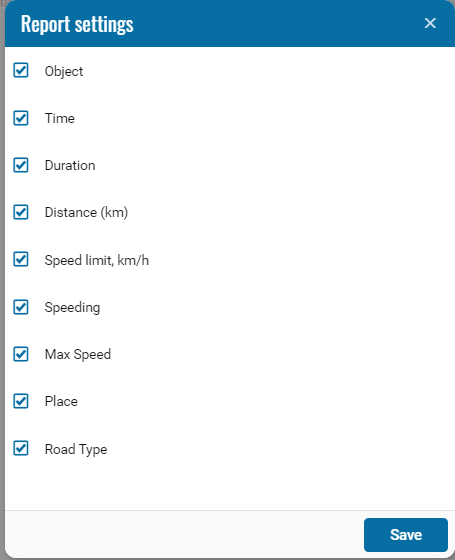 If necessary, you can disable certain parts of the report by clicking on the icon , when pressed, a menu opens where you can disable / enable certain fields.