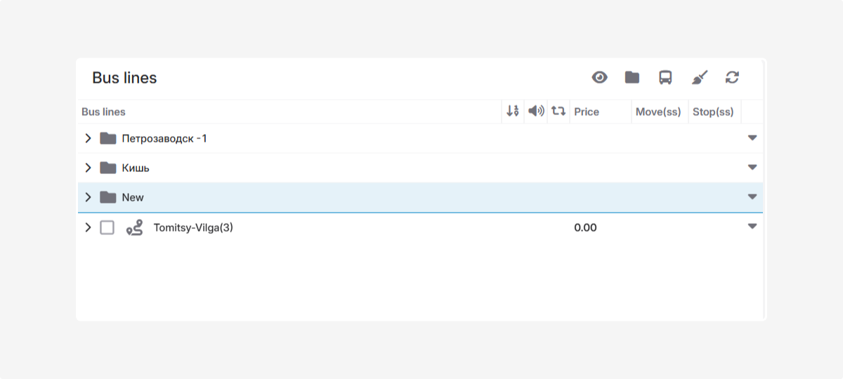 Create a new group, enter its name, and click Save. The group will appear in the bus lines list. To organize lines, simply drag and drop them into the desired groups.