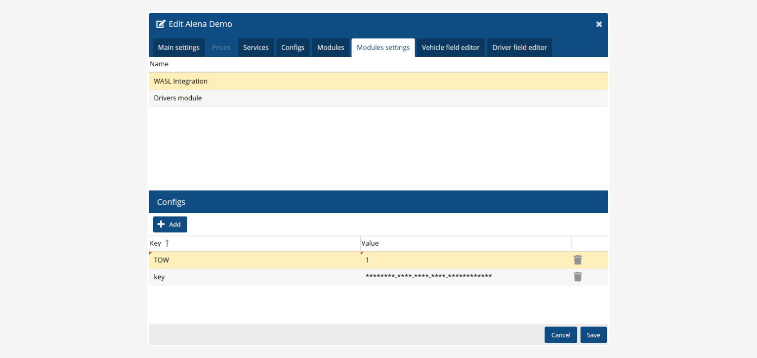 This setting enables a separate activity type Towing сar for your company and vehicles when working with WASL.