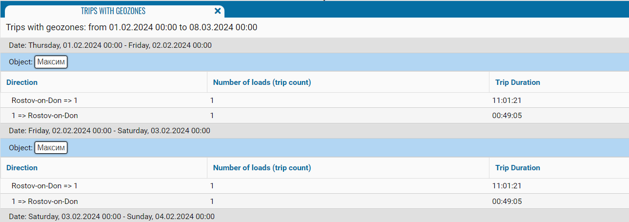 This report is designed to display information on trips in geofences.