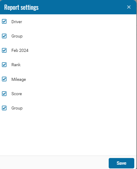 The report is designed to display a numeric or ordinal score of a driver's driving rating.