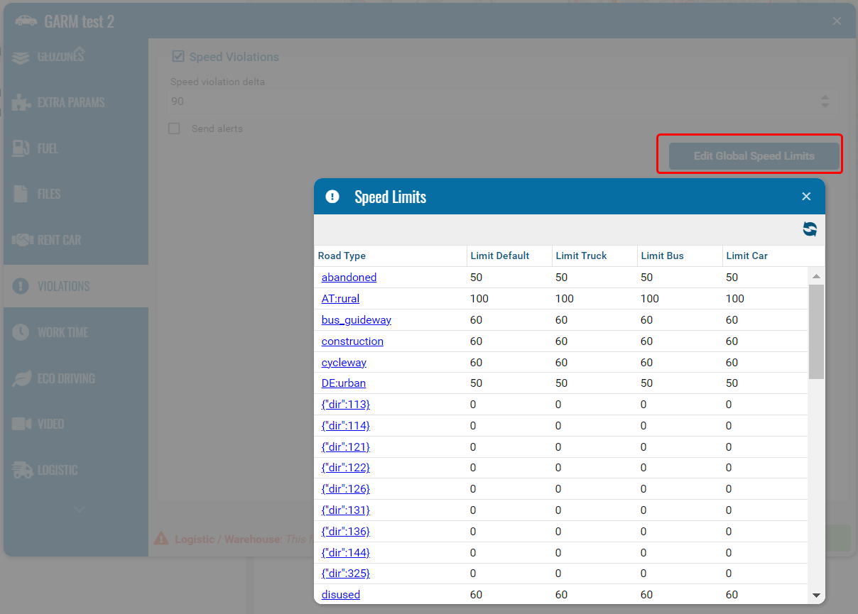 Speed ​​Limit - a field for setting the threshold, when exceeded, a speeding violation will be recorded.
