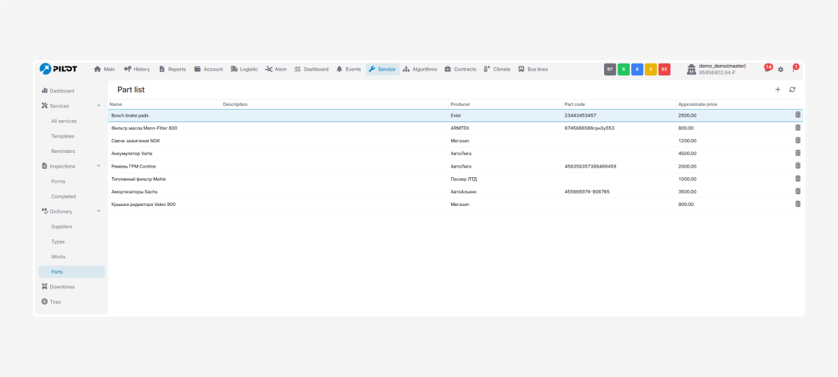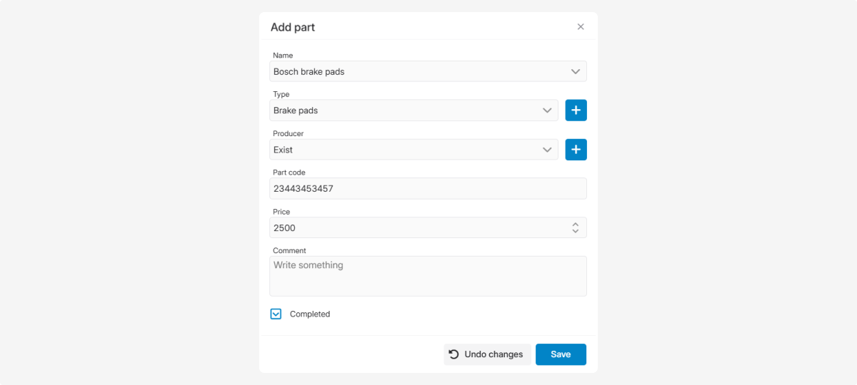 In the Works tab you create and store all jobs that can later be added to service records with one click.