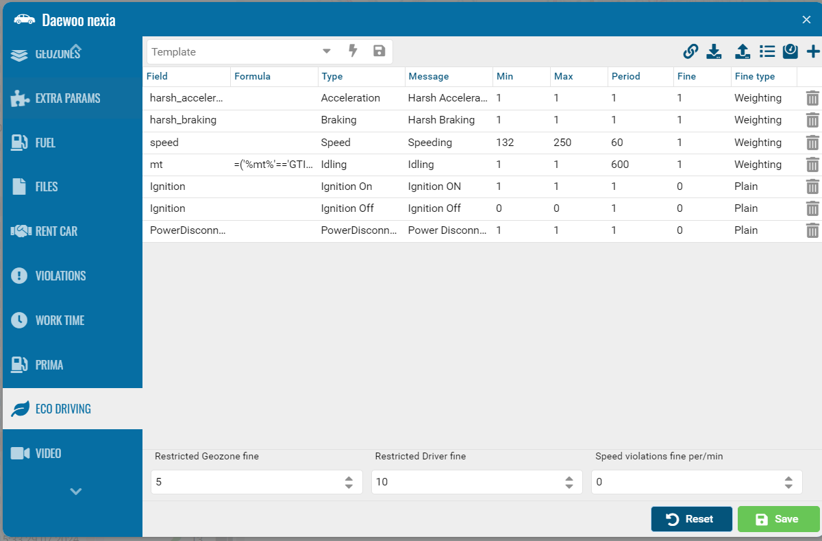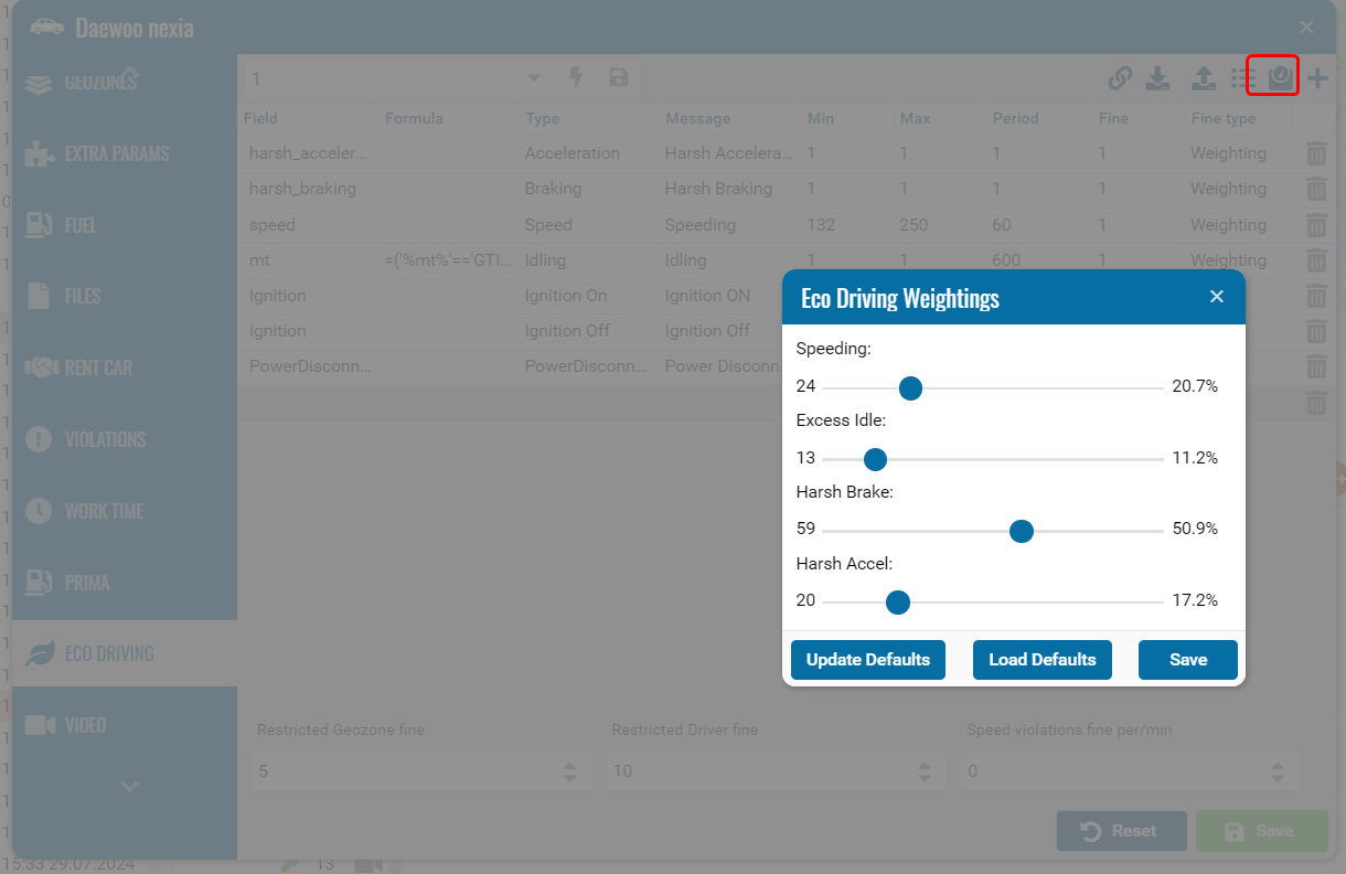 You can set up Eco Driving with weighting settings for your entire account using the sliders.