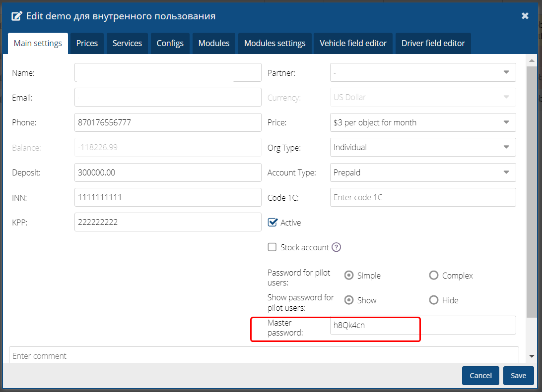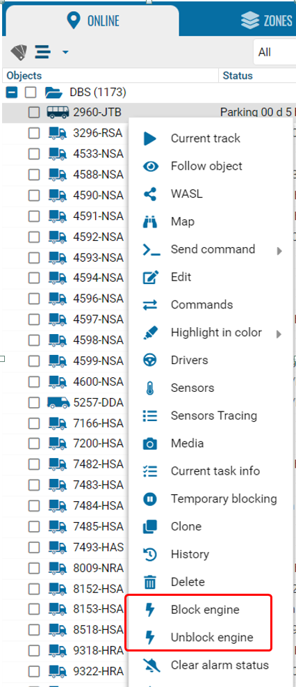 The engine blocking module must be configured via the admin panel in the contract settings.
