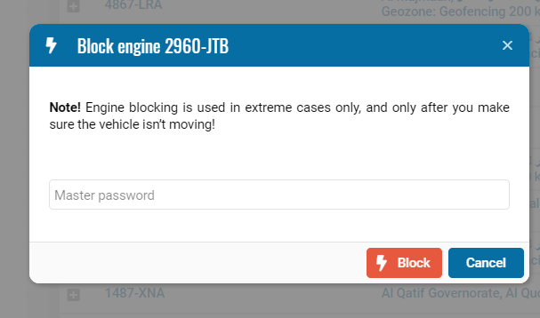 Confirm blocking or unblocking by entering the password and clicking the "Block" or "Unblock" button, respectively.