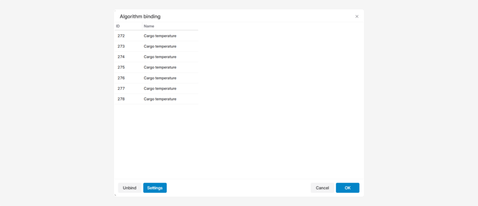 Notification conditions (for example, the Temperature parameter and its threshold)2. Click Save3. The notification with the linked algorithm will appear in the list and will be sent to the Control room when the conditions are met.