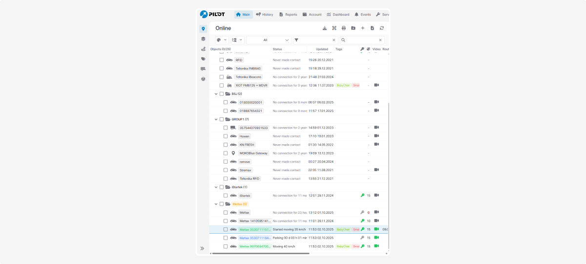 The player displays all available camera channels (for example: road, cabin, side or rear views — depending on the equipment).