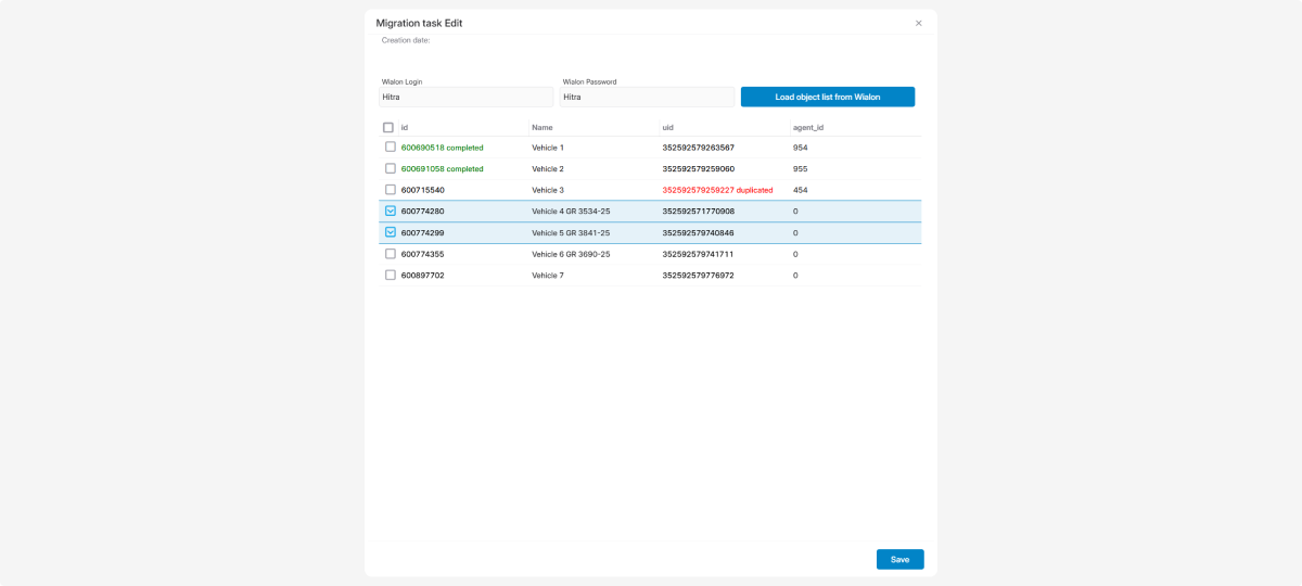 Wialon password — your Wialon password3) Click Load object list from Wialon4) At the bottom, you’ll see a list of objects available for import. Check the boxes next to the objects you want to import