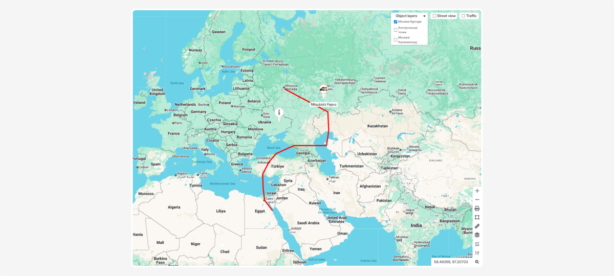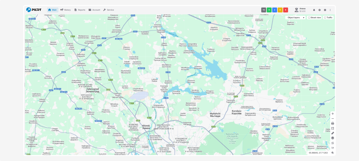 In the top-right corner of the map, you’ll find extra tools: object layers, street view, and traffic.