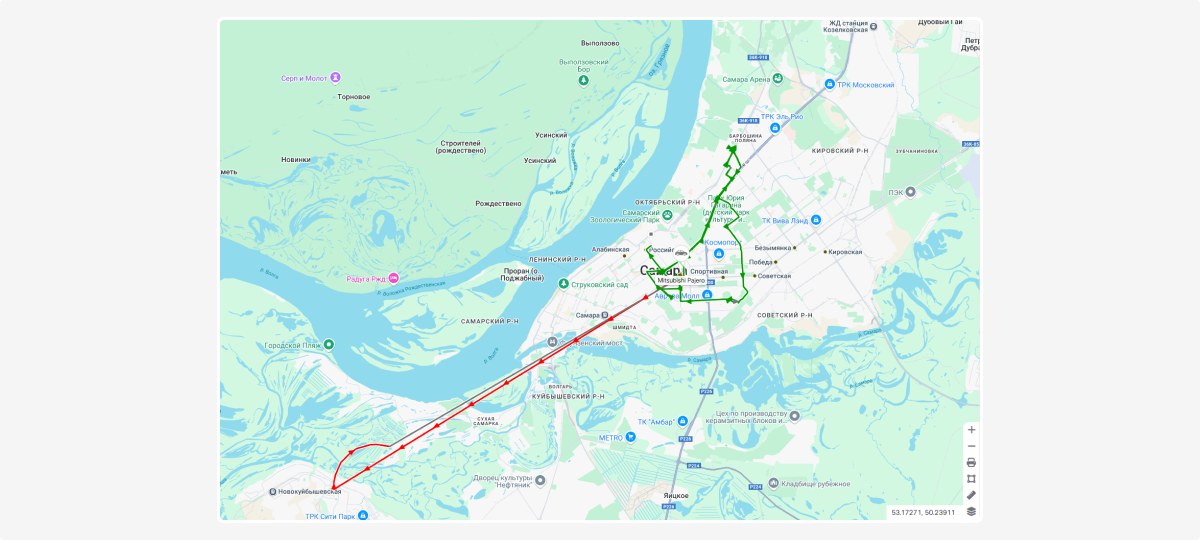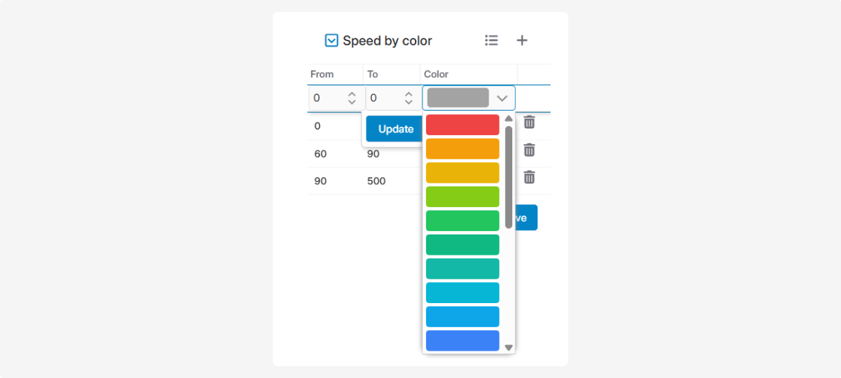 Speed color indicators show speed changes using different colors. On the movement track in History, you’ll see how fast the object was moving at each moment.