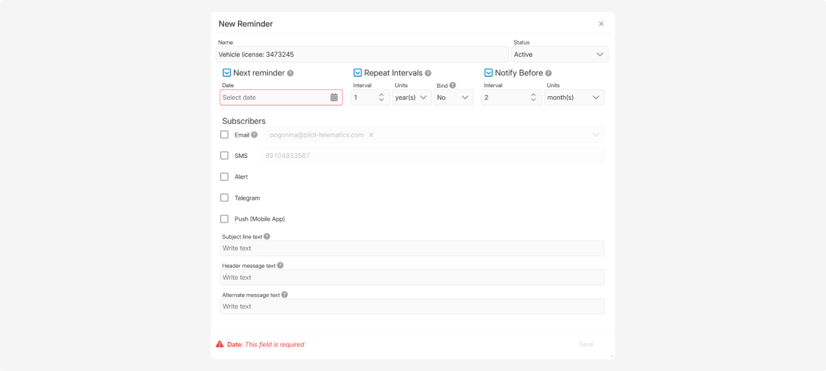 To save an object in the system, it is enough to fill in the required fields. However, for full functionality and accurate telematics data, it is recommended to complete all information.