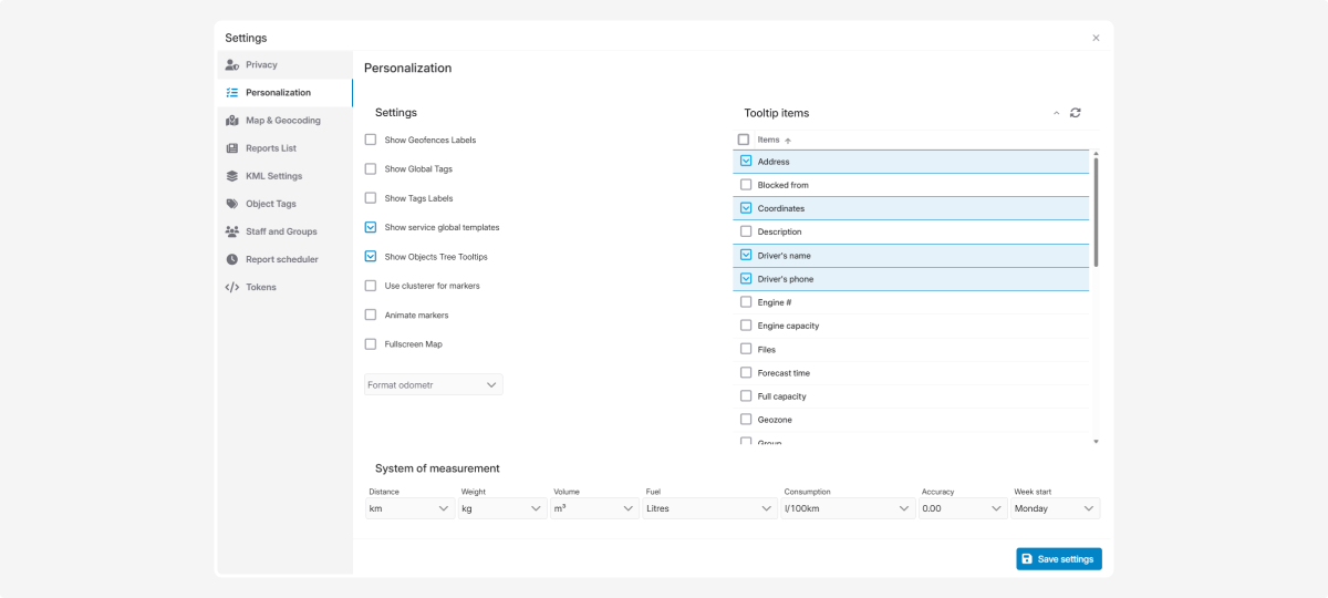 In the Tooltips items section, you can choose what additional information appears when you hover over an object icon on the map.