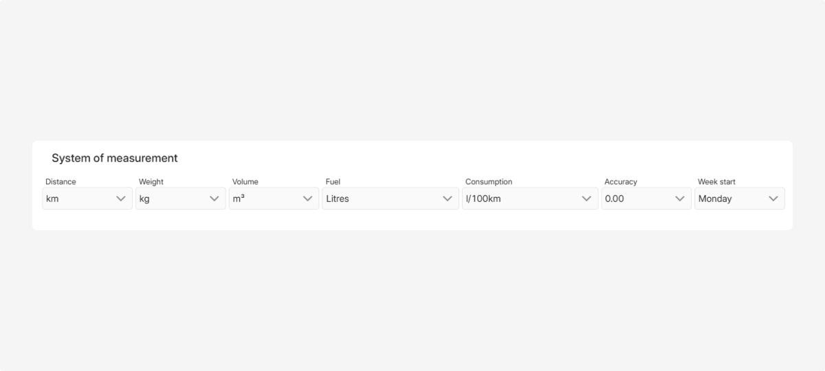 Odometer format — choose the display format for the odometer value (thousands and decimal separators)