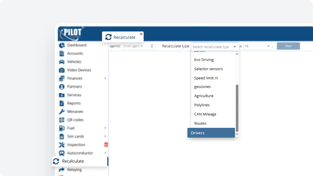Admins can now recalculate driver performance data for any specified period, ensuring report accuracy.
