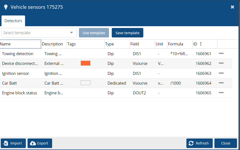 Options to apply templates, as well as import and export are available.