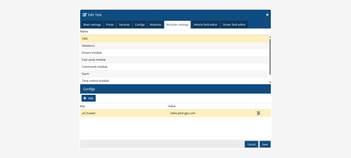 For some models, a standard connection to the server video.pilot-gps.com is used.
