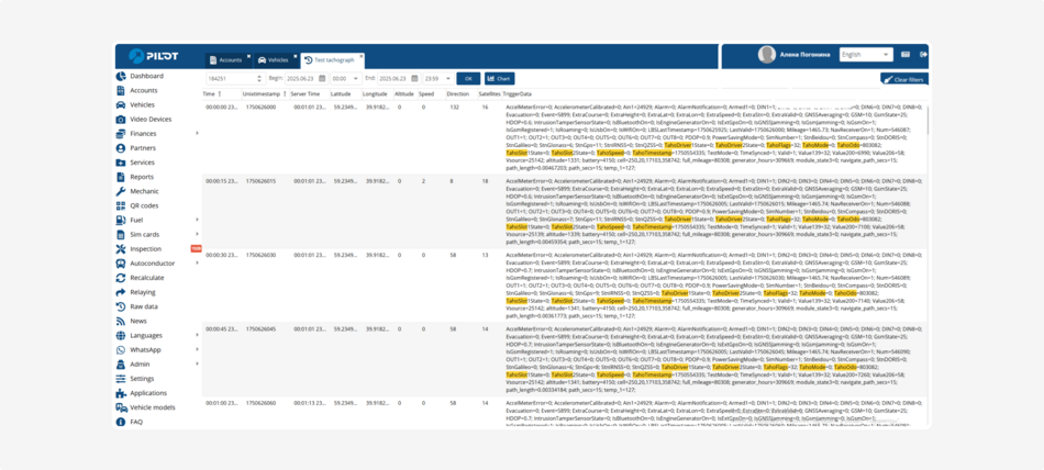 Let’s take a closer look at the data tables received directly from the digital tachograph interface — for example, via the CAN bus or another data transmission channel.