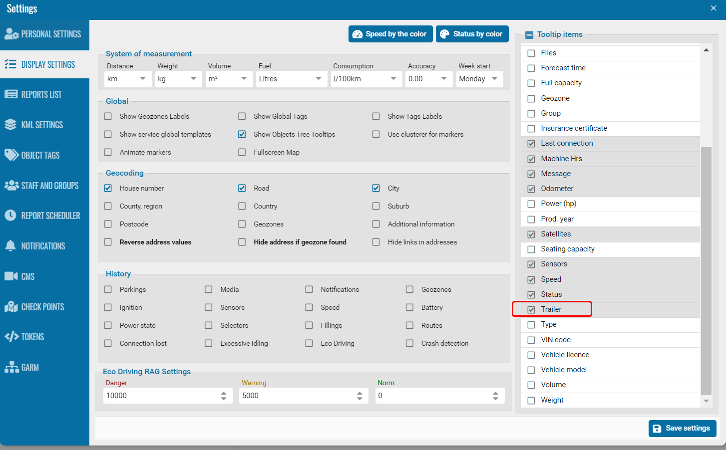 • Associated object - select from the drop-down list an object from the main tree of objects that will be considered associated with this trailer (not to which it will be attached, but from which it will receive data).